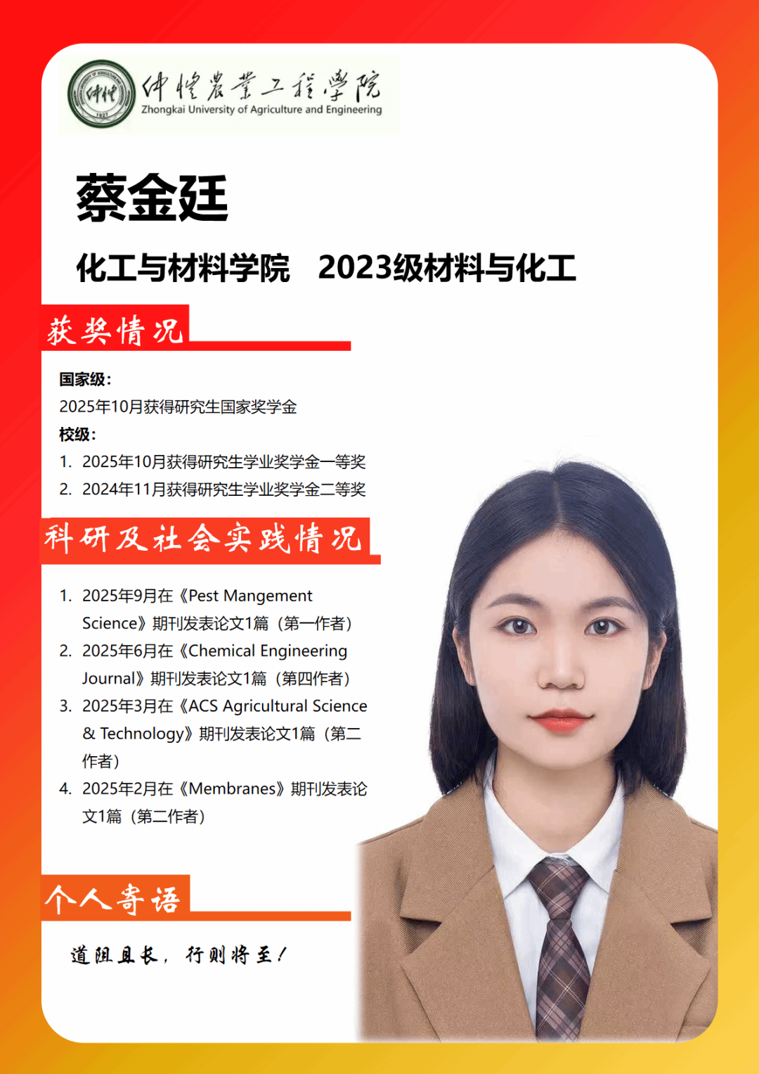 2025年研究生“国家奖学金”获奖学生风采(一)