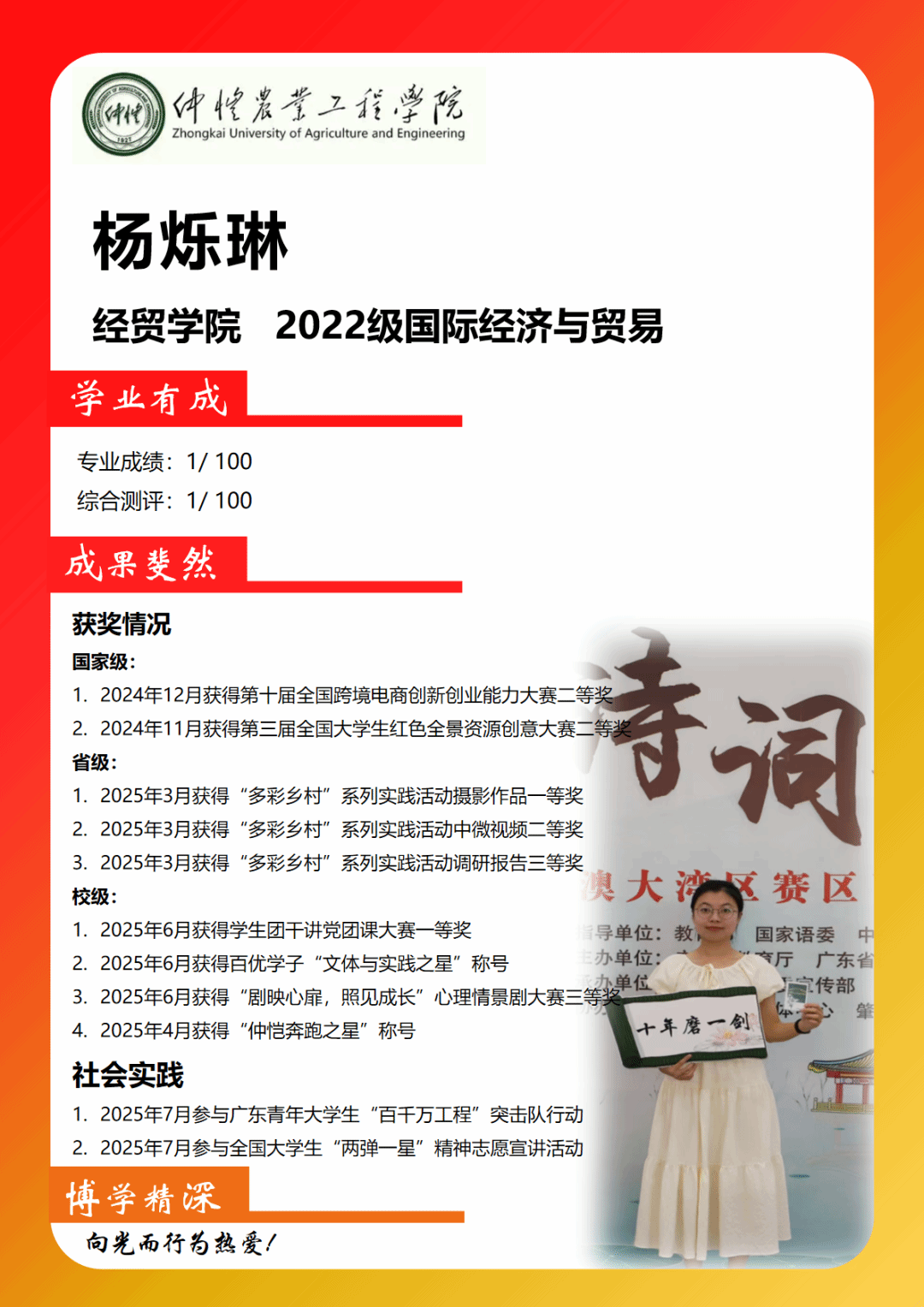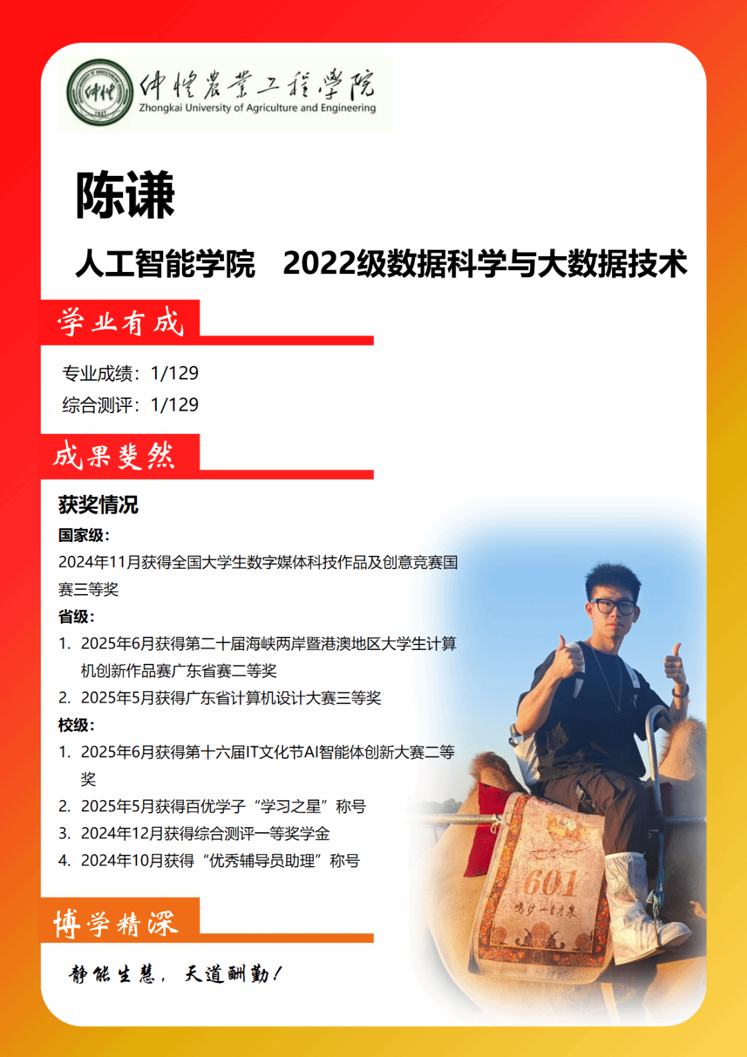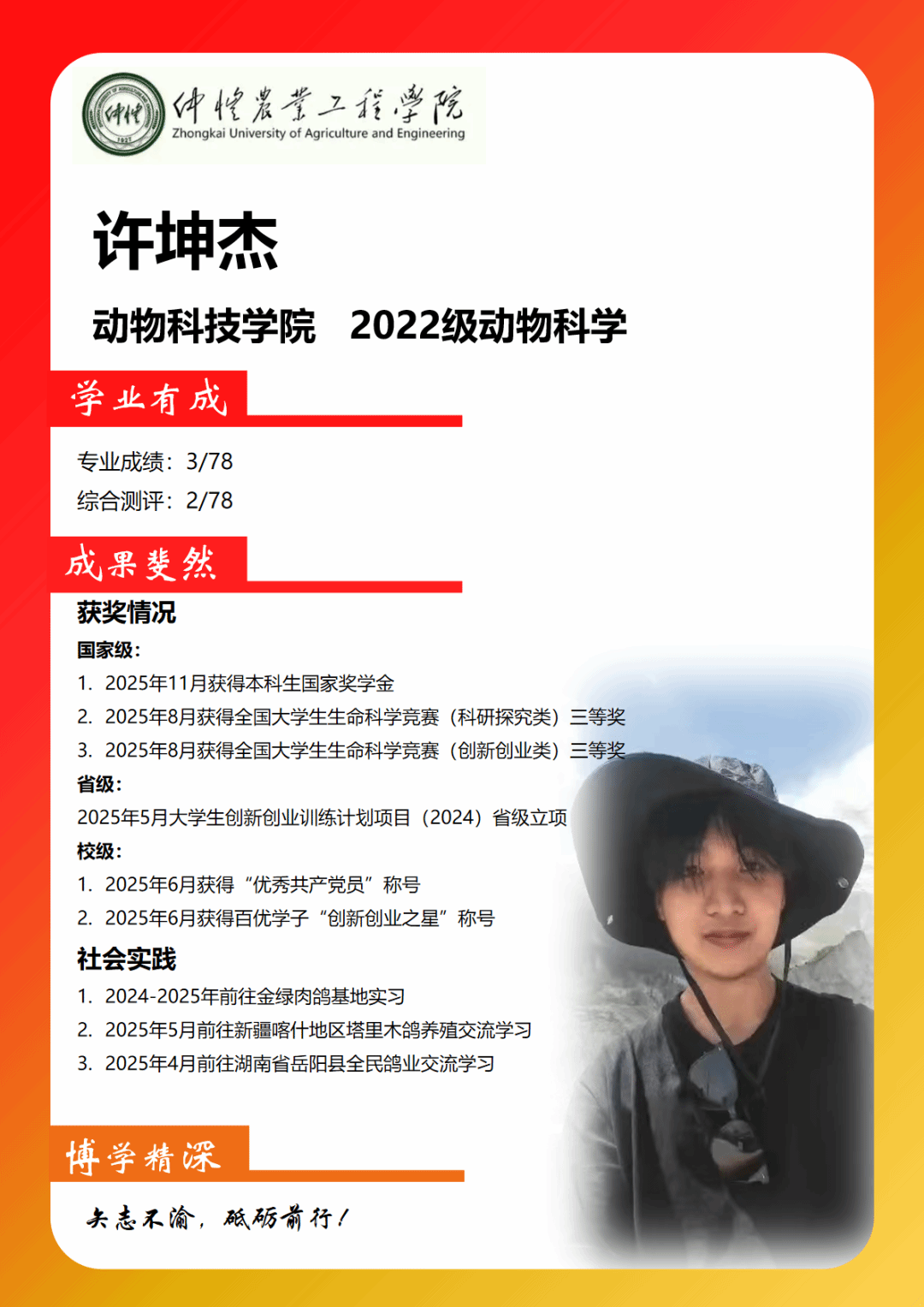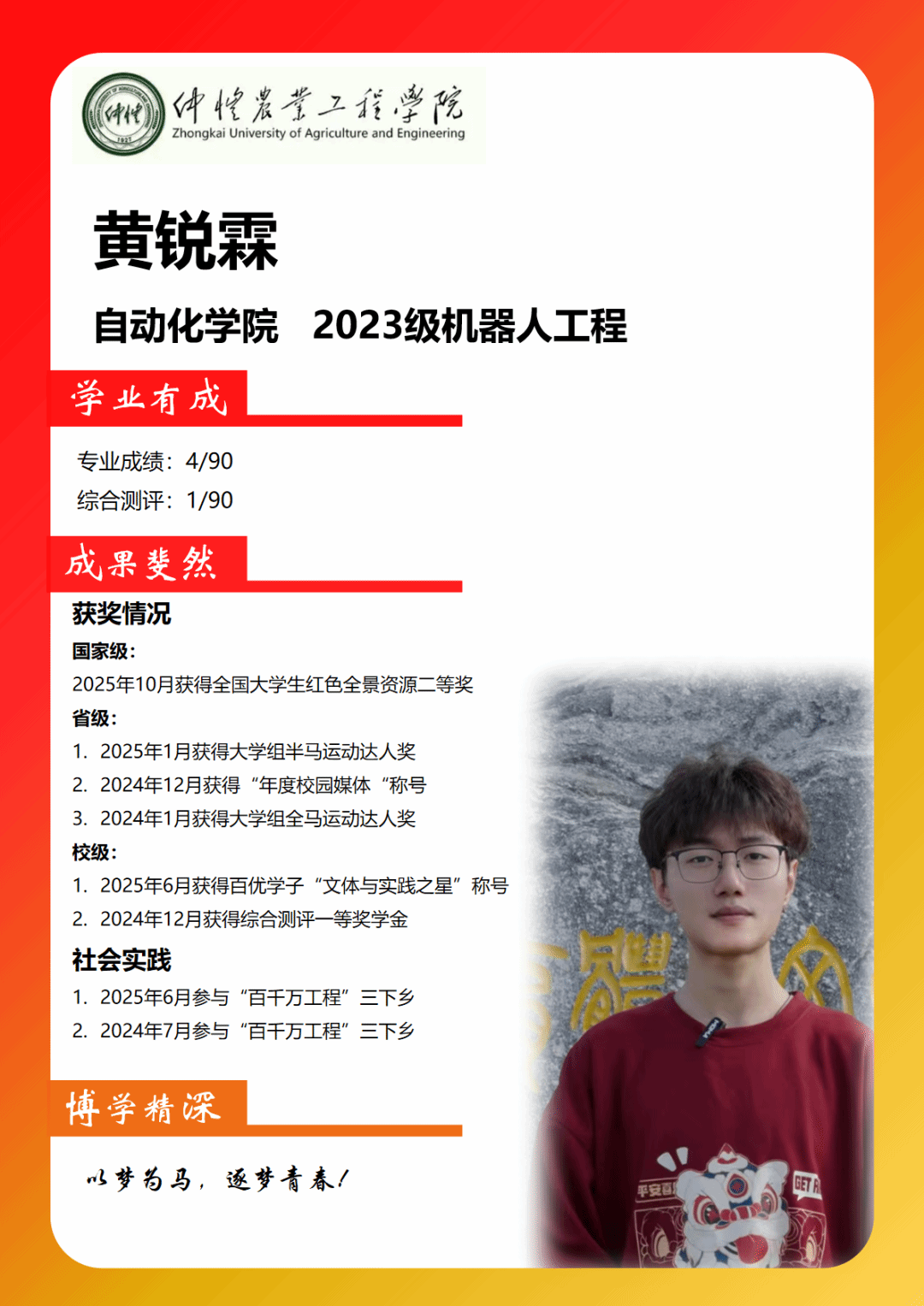2025年,我校共有10名本科生荣获特等奖学金。他们以笃实的求学态度与不懈的钻研精神,在求知的道路上潜心钻研、持之以恒,用扎实成长与全面发展的优异表现,诠释了新时代青年的卓越风采!
