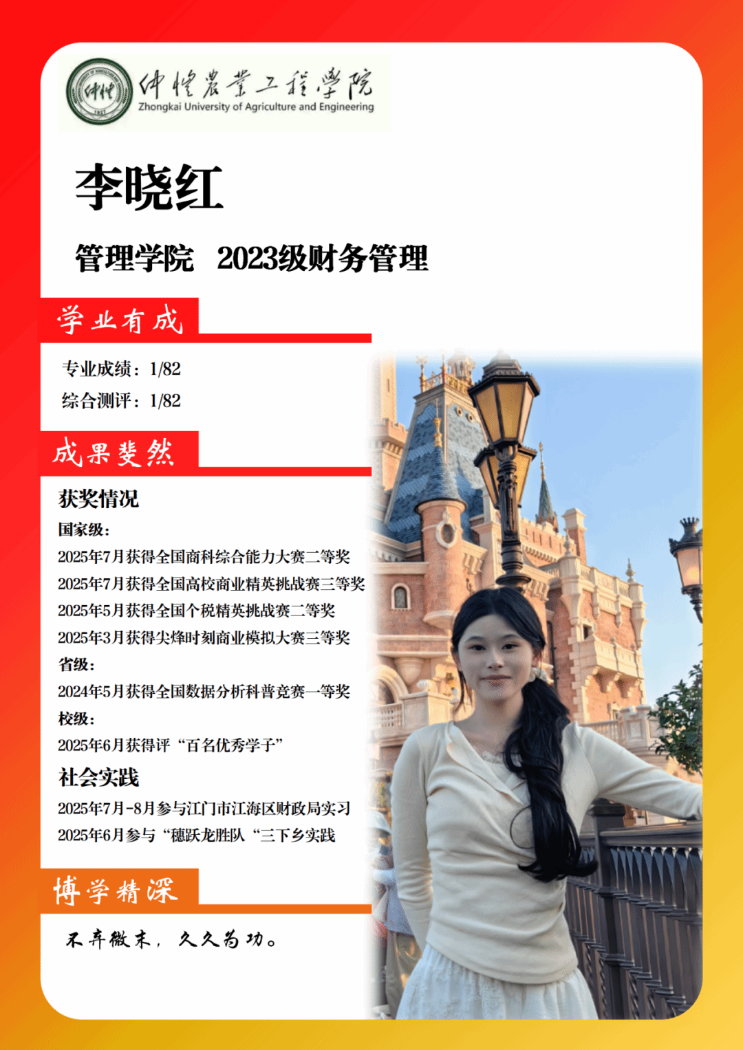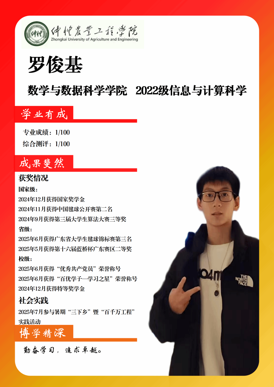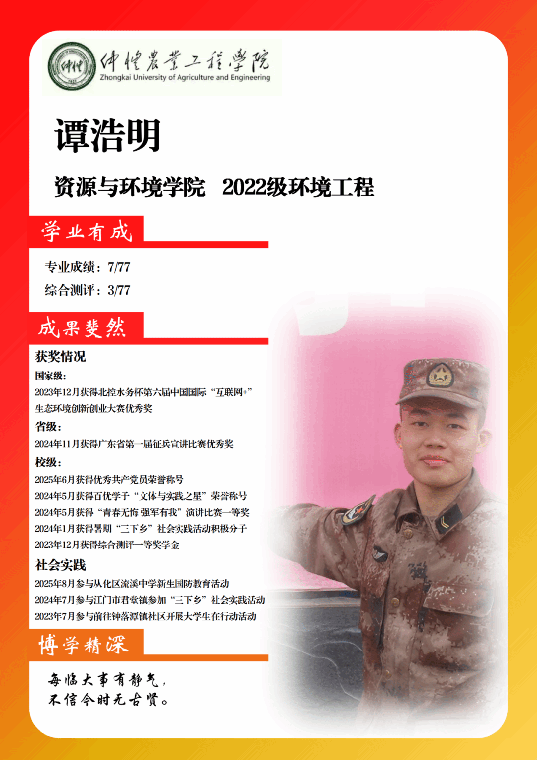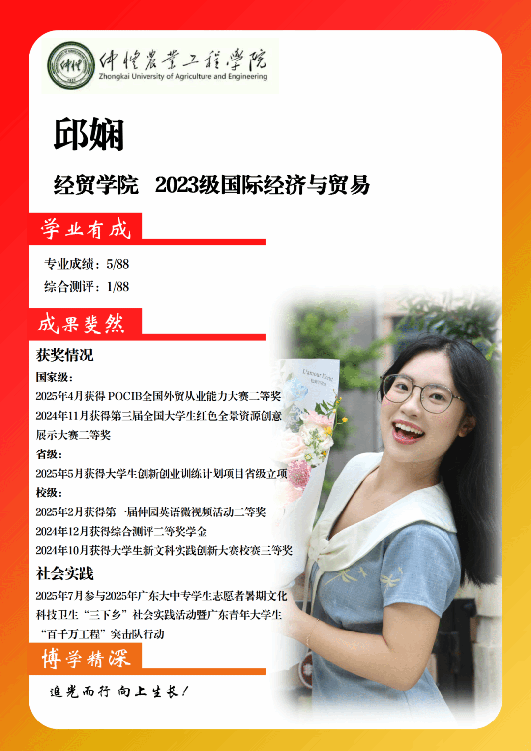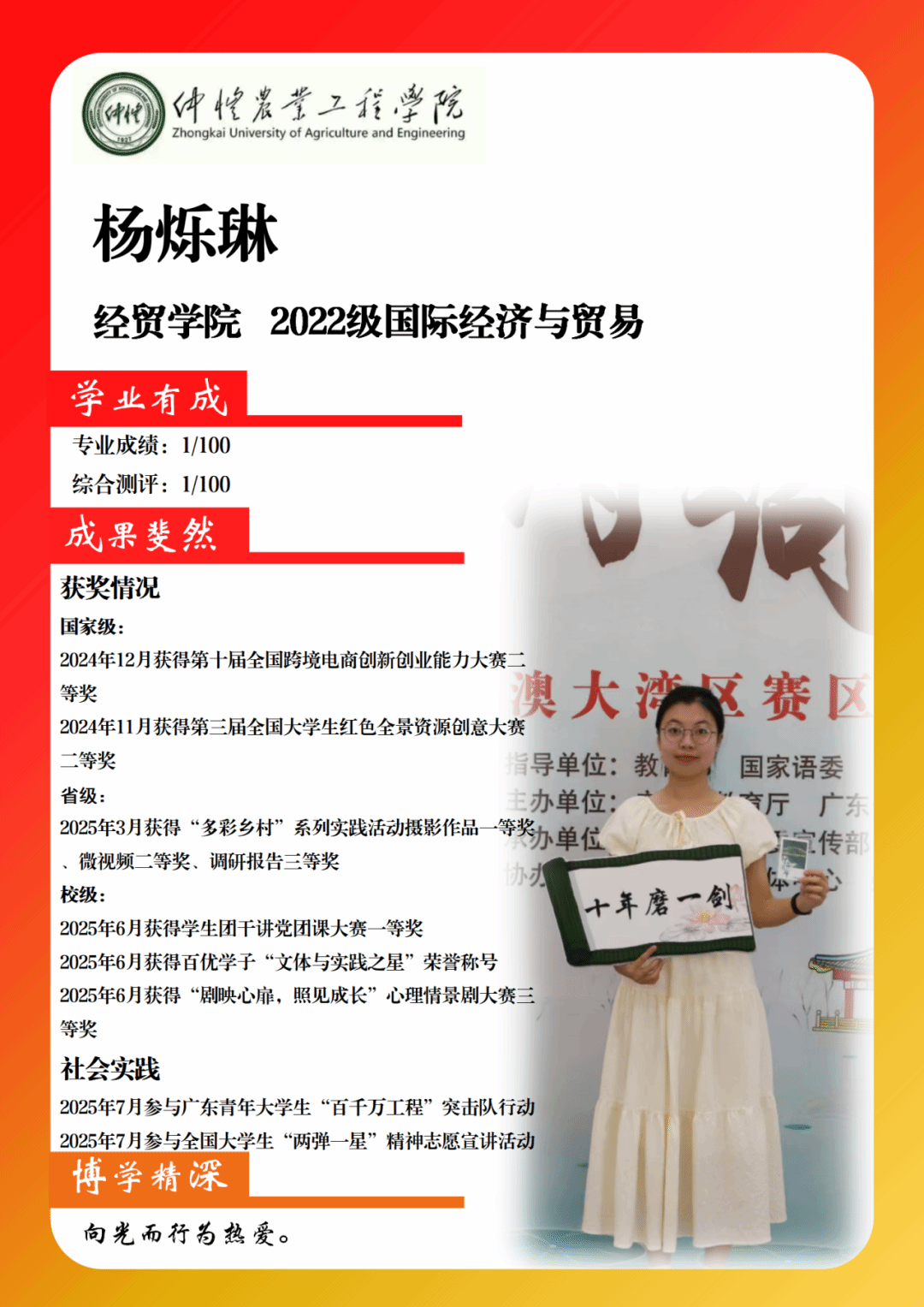 干在实处永无止境,走在前列要谋新篇,勇立潮头方显担当。国家奖学金既是对学子过往努力的肯定,更是激励其奔赴未来的强劲动力。求学之路从非坦途,唯有心怀梦想、脚踏实地,方能在耕耘中收获成长。