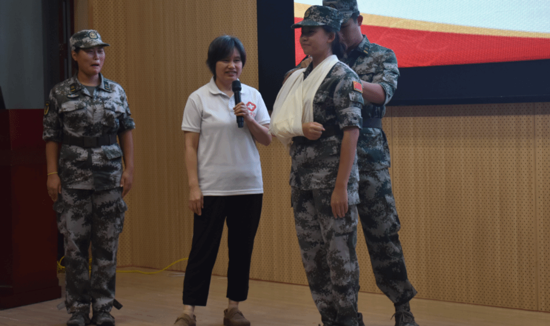 为确保2025级学生军训工作安全有序开展,全面提升军训期间的医疗保障水平,9月6日,校医院联合武装部在两校区组织开展2025级新生军训常见问题专项培训。本次培训特邀广州红十字医院专业医疗急救讲师潘婕、曾凤兰进行授课,学生工作党委委员、学生工作部(武装部)副部长王建伟,二级学院新生辅导员,军训教官团全体成员及2025级新生助班参加培训。