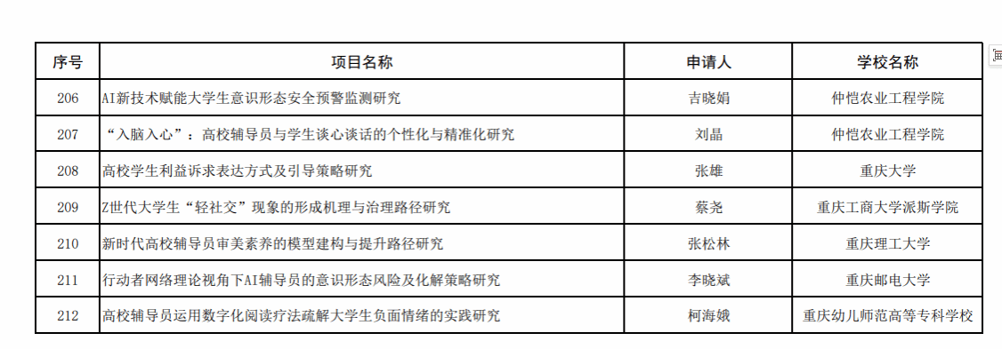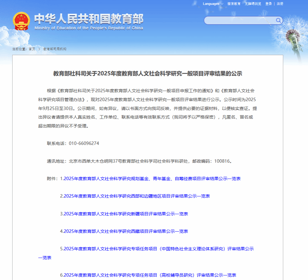 教育部人文社会科学研究专项任务项目(高校辅导员研究)旨在提升高校思想政治工作研究质量,切实推动高校构建思想政治工作体系。该专项任务项目实行限额申报,每所高校限报2项,经专家评审,2025年全国最终评选出高校辅导员研究项目212项。据悉,我校连续两年立项率100%。