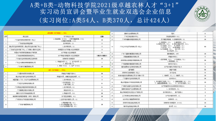 学院扎实推进“卓越农林工程”建设,成效显著:针对农科人才就业特点,实施“3+1”人才培养模式改革,使学生到田间地头、生产一线去学习实践,为学生铺好从学校到就业的最后一公里。从就业情况看,除升学外,有50%的本科毕业生和近70%的研究生能够从事与所学专业相关的工作,不仅彰显了动物科技学院教育教学的实效性,也反映了学院在人才培养方面与社会需求的深度融合。