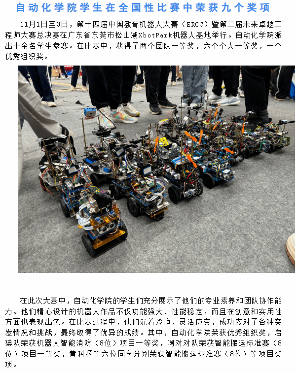 学院通过创立“实验班”、举办“恺凝杯”智能科技文化节等创新性做法提升人才培养质量,有效促进学风整体提升。一方面在科创竞赛方面勇攀高峰,近三年学生在全国电子设计大赛、“挑战杯”全国大学生课外学术科技作品竞赛以及全国大学生机器人大赛机甲大师赛等比赛中先后获国家级和省级奖励300多项。在2025年全国大学生电子设计竞赛不仅在省赛中斩获一等奖,更凭借作品的卓越设计与稳定性能,从全国1000余支参赛队伍中脱颖而出,勇夺全国二等奖;在第十四届中国教育机器人大赛(ERCC)暨第二届未来卓越工程师大赛中获团队一等奖2项,个人一等奖6项,优秀组织奖1项。另一方面近年来学院就业去向落实率名列前列,初次就业率均高达90%以上;升学人数稳步提升,升学院校有华南理工大学、广东工业大学、深圳大学等知名学府;在高质量就业方面也不断创新高,毕业生入职南方电网、中国烟草、中国石化等大型央国企。