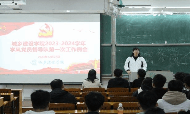 为加强配合学院分团委、学生会的学风建设工作,组建由全部学生党员组成的城乡建设学院促提学风党员督导队,进一步推进学院学风建设工作。学风党员督导队对全院的宿舍卫生、作息状况和到课率进行抽查、对学院大一至大三宿舍晚上11点以后进行检查,对违反校纪校规进行通报,督促引导学生遵守学校相关管理规定。