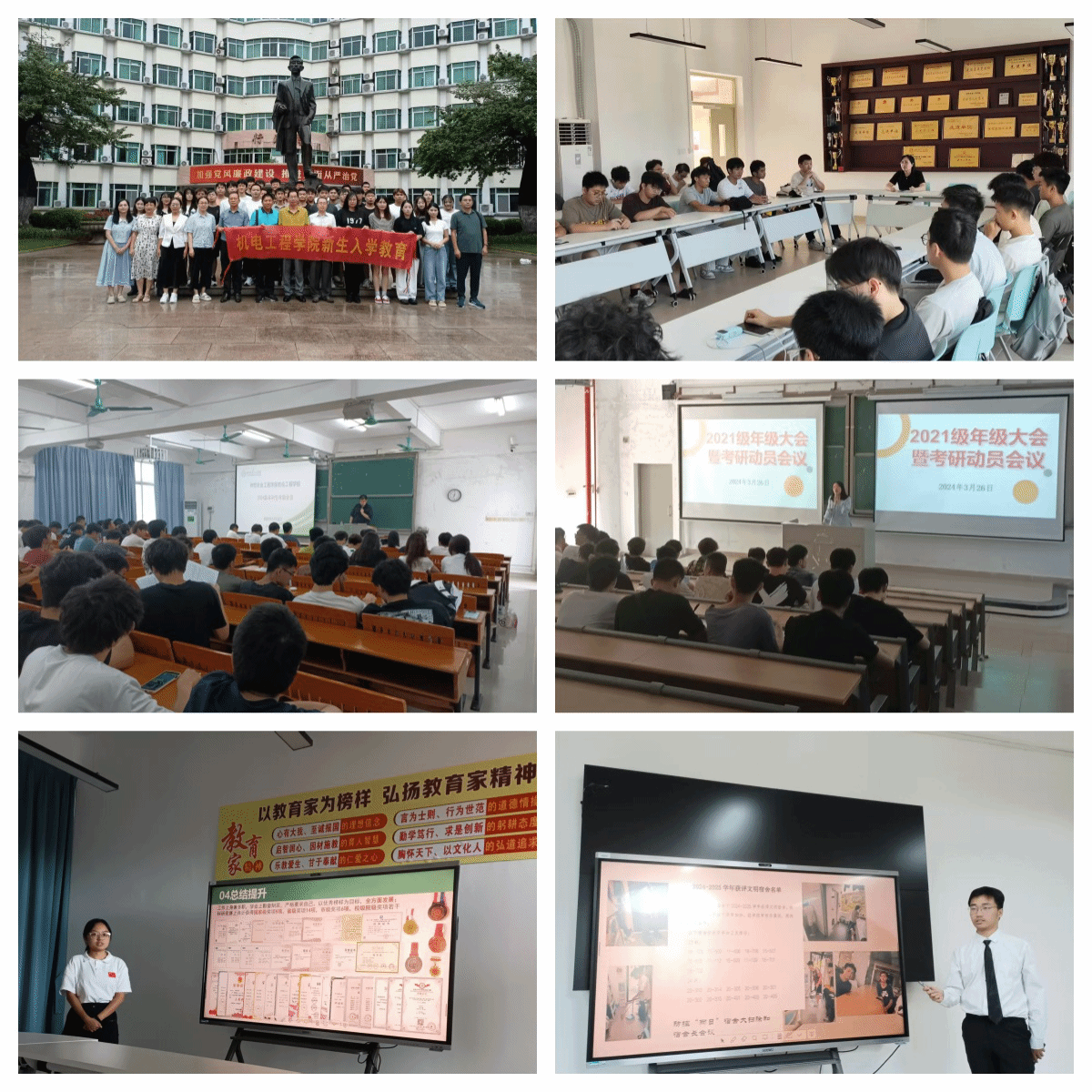机电工程学院全体师生深入学习贯彻党的二十大精神,以思想为引领,筑牢学风建设思想根基,围绕校风、班风、舍风建设,入学教育、班风评估、考研交流、诚信考试等内容。学院各年级每学年平均召开学风建设主题班会8次,参与学生占学院总学生人数的98%。学院定期开展理想信念教育,将理想信念教育融入日常思想政治教育工作,通过党课学习、红色教育基地参观等活动,引导学生将个人理想与国家发展、社会需求相结合。此外,学院每学年召开“学习经验分享会”2-3次,帮助学生明确职业规划和学习方向。