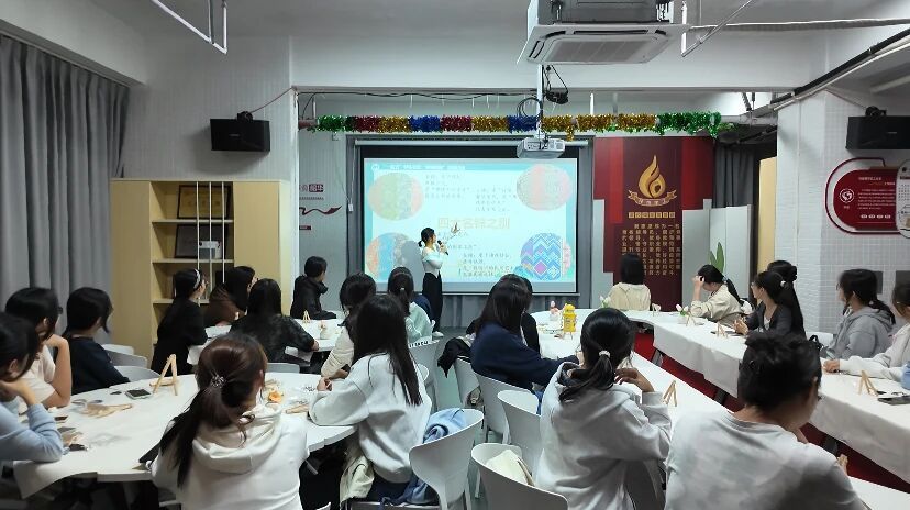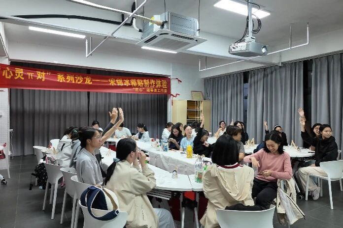 为弘扬和传承宋锦非遗文化,同时为学生提供手作疗愈体验,11月5日,由学生工作部学生社区管理服务中心主办、学生社区自治管理委员会承办的“心灵π对”系列沙龙之宋锦冰箱贴制作体验活动在21栋听能辅导员工作室顺利开展。同学们在这里放松身心,沉浸式体验宋锦文化之美。