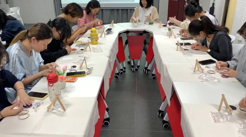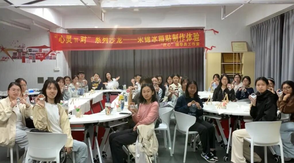 此次宋锦冰箱贴制作体验活动,以“非遗 + 疗愈”的形式,为同学们搭建了接触传统文化、放松身心的平台。在动手实践中,同学们不仅近距离感受了宋锦的工艺之美,加深了对非遗文化的理解与认同,更在专注创作的过程中舒缓了学业压力,获得了心灵的疗愈与滋养。
