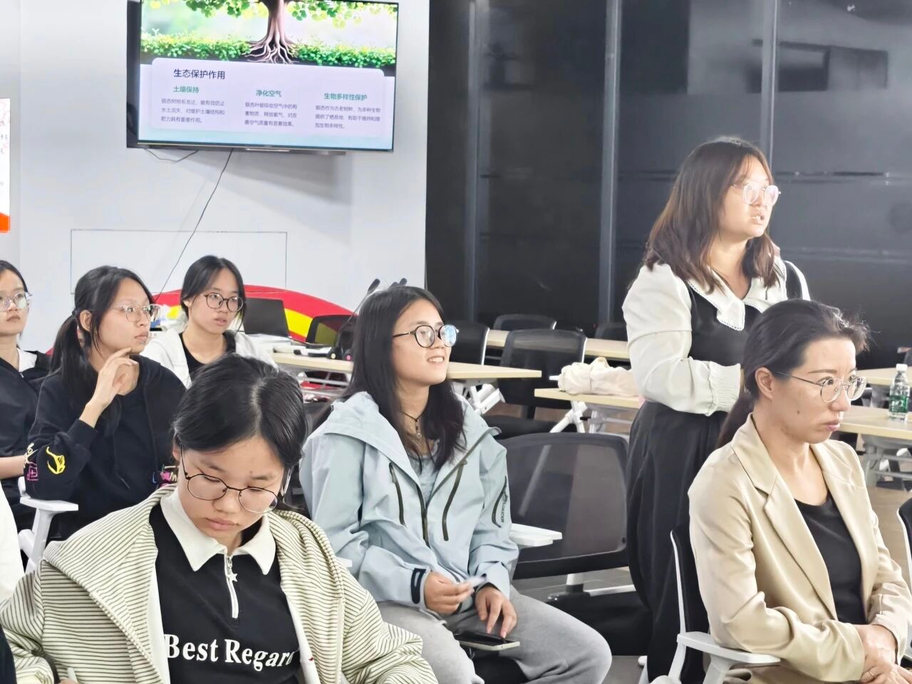 于昕塍以专业、生动的语言,为同学们解锁银杏的“亿年成长密码”,从银杏成长日志、生态与经济价值、保护情况及相关科研进展四个方面展开。以自身经历切入,分享了从东北到南岳的银杏结缘经历,让枯燥的专业知识变得鲜活有趣,同学们听得聚精会神。