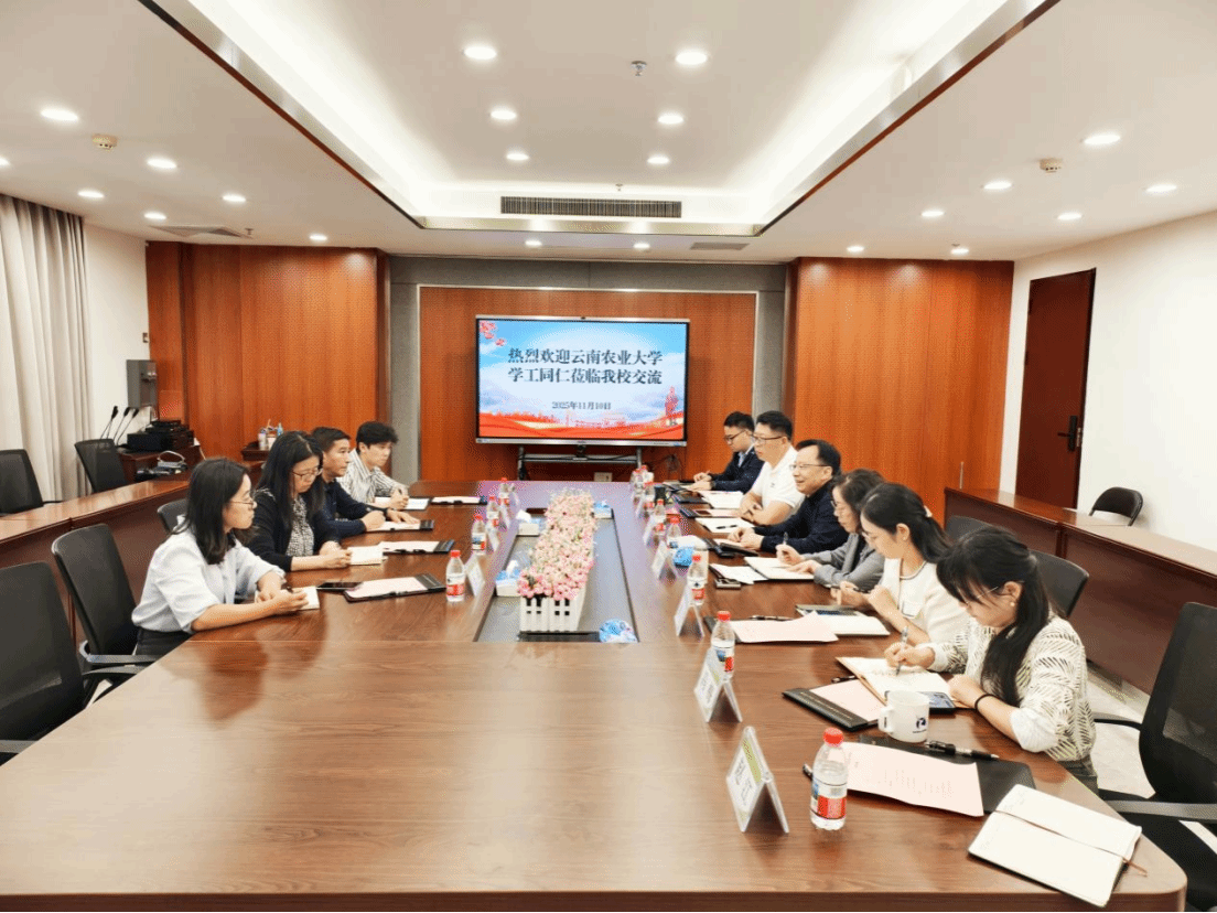 11月10日下午,云南农业大学学生中心主任张静一行来我校调研交流学生工作。我校学生工作党委书记李伟东,学生工作党委委员、学生工作部副部长严丽纯、王建伟、黄云,学生工作党委办公室主任尹彩霞,思想政治教育科科长冯梅,学生社区管理科科长徐盼及军事科副科长赵江参与交流。