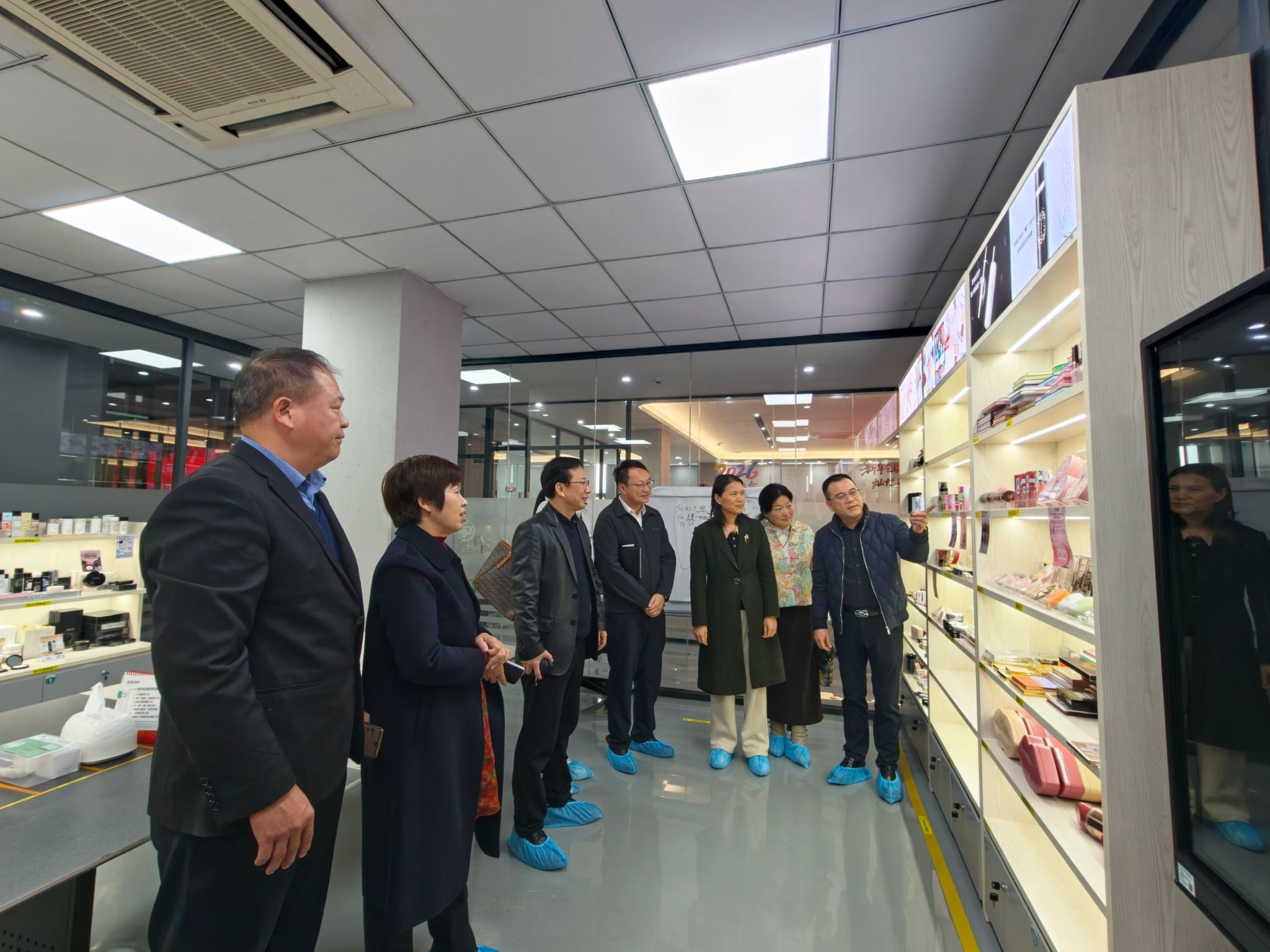 在中山华南现代中医药城,调研组走访了校友企业——广东碧茜生物科技有限公司。公司总经理、我校食品92级校友蔡志勇陪同参观了化妆品研发与生产车间,并组织召开政校企合作座谈会。中山市工业和信息化局副局长朱俊檏、工业园区科科长吴敏华,翠亨新区投资促进中心主任周佳曼莅临指导,中山校友联络处校友代表叶建设、曹国富、梁文勇、黄惠华等参加交流。