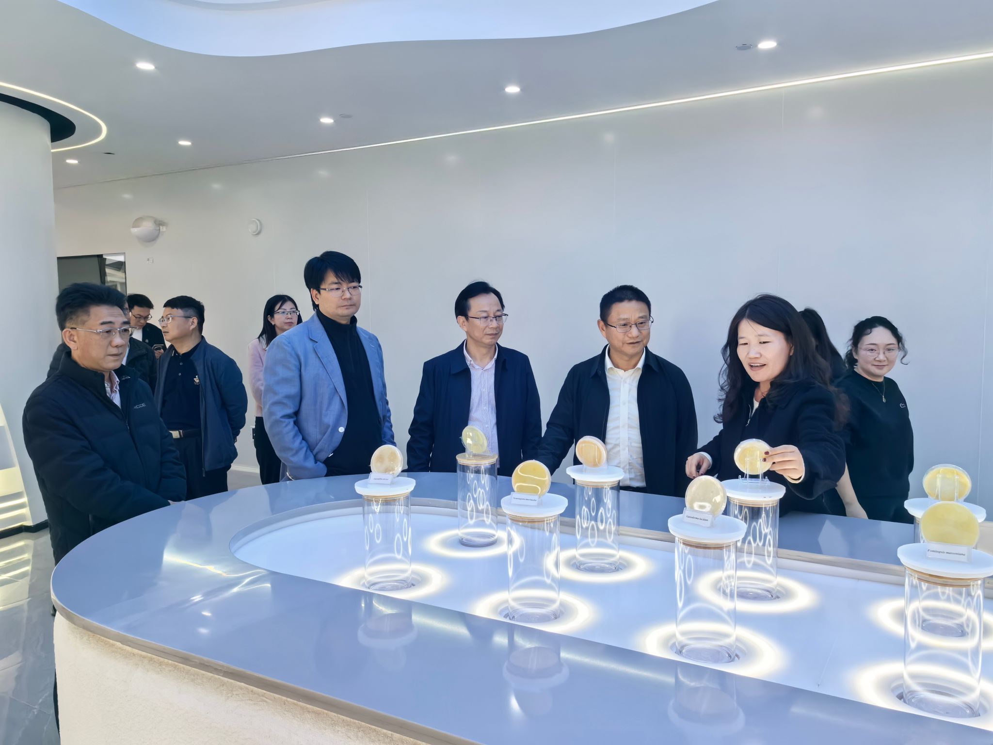 随后,在企业团队的陪同下,廖明一行实地走访了慕恩生物研发实验室、蘑米生物中试基地及展厅,观看了微生物菌株筛选与发酵工艺演示,考察了高通量测序平台等先进研发设施,体验了企业自主研发的菌丝蛋白产品和食品,直观感受生物制造技术在民生领域的应用价值。