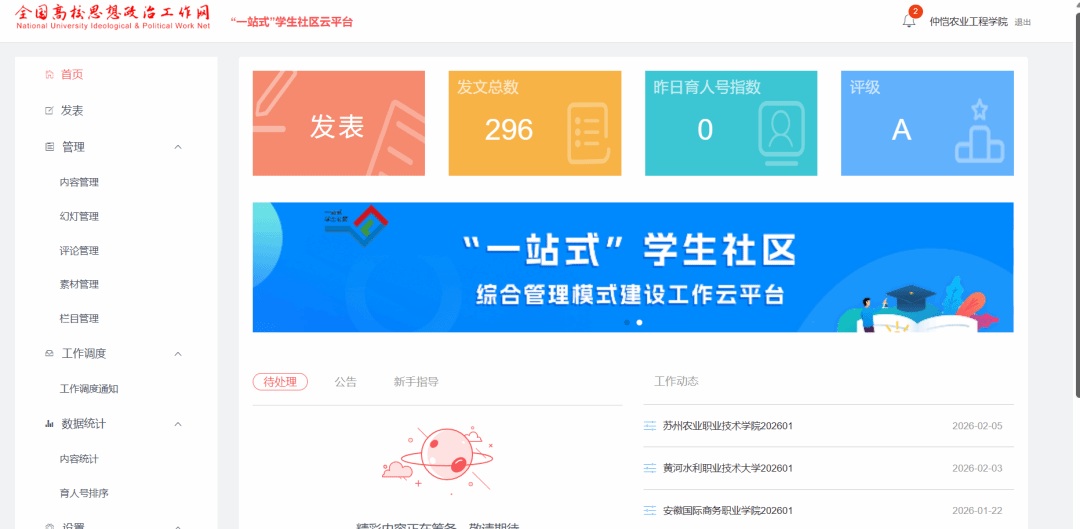 全国高校思想政治工作网“一站式”学生社区云平台高校评级认定页面