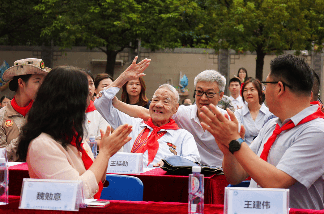 当天还邀请了抗美援朝老兵王桂勋,他14岁参军,15岁入朝作战。他胸前佩戴着70周年纪念章,回忆起在极寒中肩扛炸弹、手摇油泵,与战友共建“打不断、炸不烂”的钢铁运输线的经历。一句“我是少先队员,我来搬运物资”,跨越70多年,深深打动了现场师生。