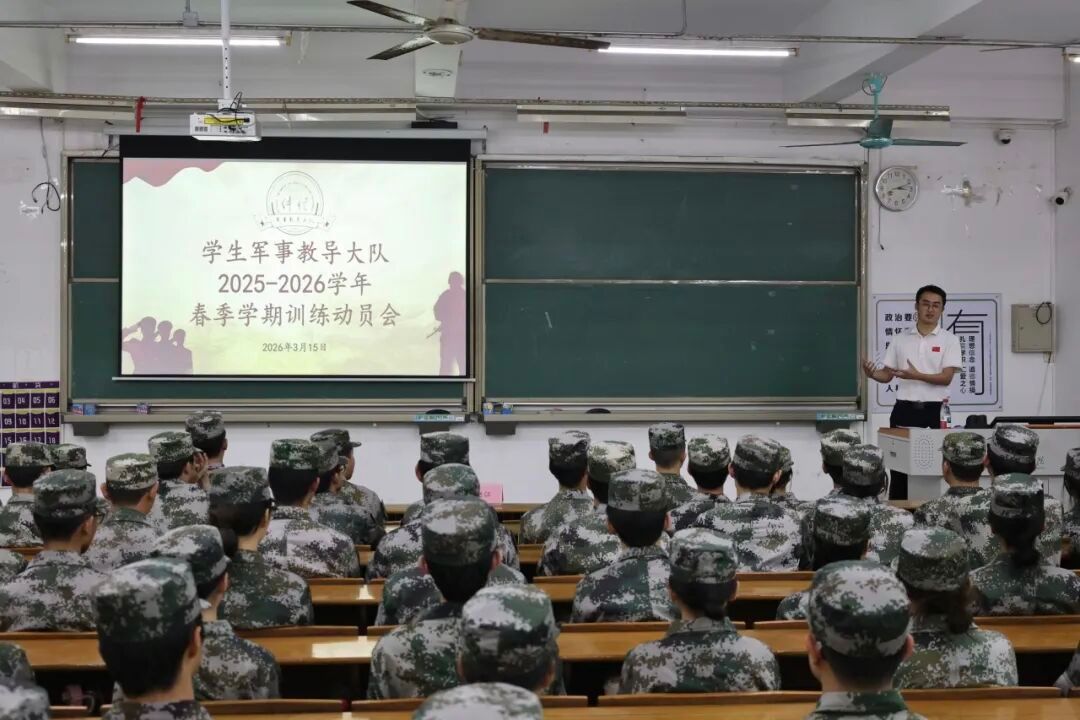 近日,我校学生军事教导大队分别在海珠校区教学楼B301、白云校区杨楼210召开了学生军事教导大队春季学期训练动员会。学生工作部(武装部)赵江、熊雪出席,学生军事教导大队全体成员参加了此次会议。