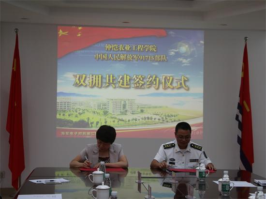 为进一步加强军地交流,促进双拥共建工作,加强我校学生国防教育,学校与海军91715部队举行双拥共建签约仪式,结为“双拥共建单位”。91715部队团长周希亮、政委余云付,学校党委副书记向梅梅、学生工作部(处)部(处)长李伟东、副部(处)长昌灯圣等参加了签约仪式。