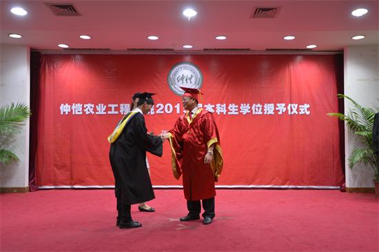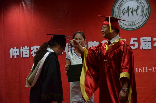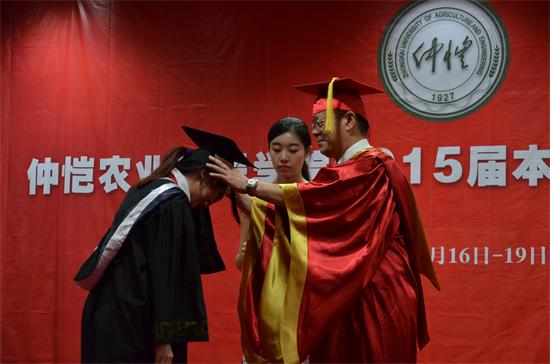6月毕业季,依依难舍情。仲恺农业工程学院2015届本科生学位授予仪式从16日起在海珠校区学术报告厅举行,学校校长、学位委员会主席骆少明教授为全体4043名毕业生授予学士学位。