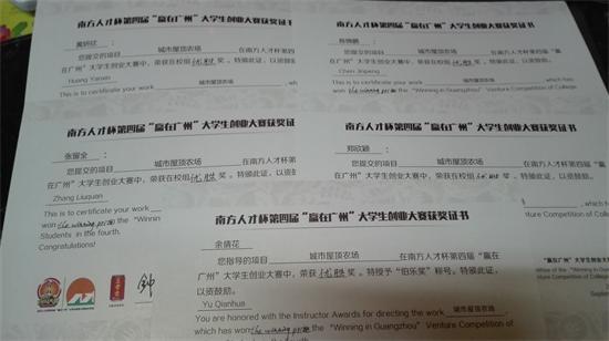 9月12日至9月14日,由广州市人力资源和社会保障局主办的南方人才杯第四届“创业中国,赢在广州”大学生创业大赛半决赛在广州中医药大学圆满落下帷幕。我校参赛团队(园艺园林学院:张留全、陈锦鹏、郑欣颖,人文与社会科学学院:黄妍欣)的项目“城市屋顶农场”,在本次大赛中历经初赛、复赛、半决赛的重重考验,最终在40支参赛团队中脱颖而出,荣获优胜奖。