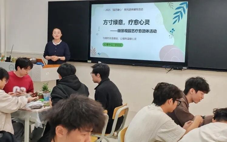 罗欣欣总结道:“园艺疗法的核心在于‘过程而非结果’。它不仅是一次手工体验,更是一次心灵上的灌溉与整理。在方寸绿意之间,同学们暂时远离学业与生活的压力,在与植物的互动中学会观察、耐心与关爱,也在团体分享中听见彼此、看见自己。”