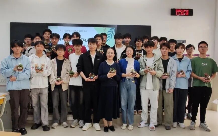 12月12日下午,心理中心“园艺健心”系列团体辅导活动在自动化学院开展,为25名同学带来了一场别开生面的心理成长体验。心理中心专职老师罗欣欣带领同学们通过苔藓微景观制作,在青苔砂石间感受生命的力量,在亲手创造中安顿当下的自己。自动化学院辅导员江晗菁、兼职辅导员熊洪星共同参与此次活动。