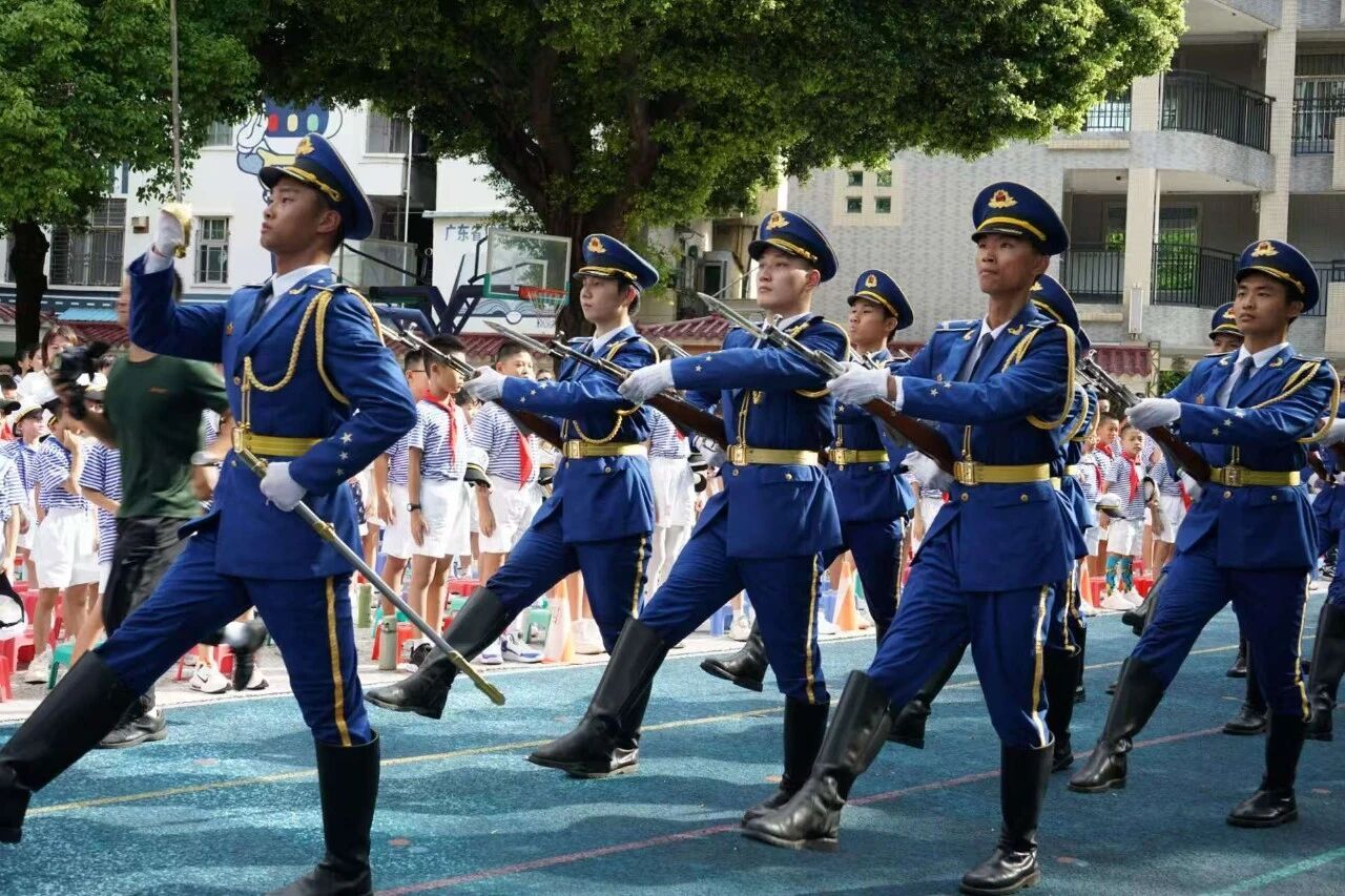 在两校的开学典礼上,队员们迈着整齐有力的步伐,他们步伐铿锵、动作标准,以一场肃穆而隆重的升旗仪式为新学期献上第一份庄严礼赞。出色完成了升旗任务。