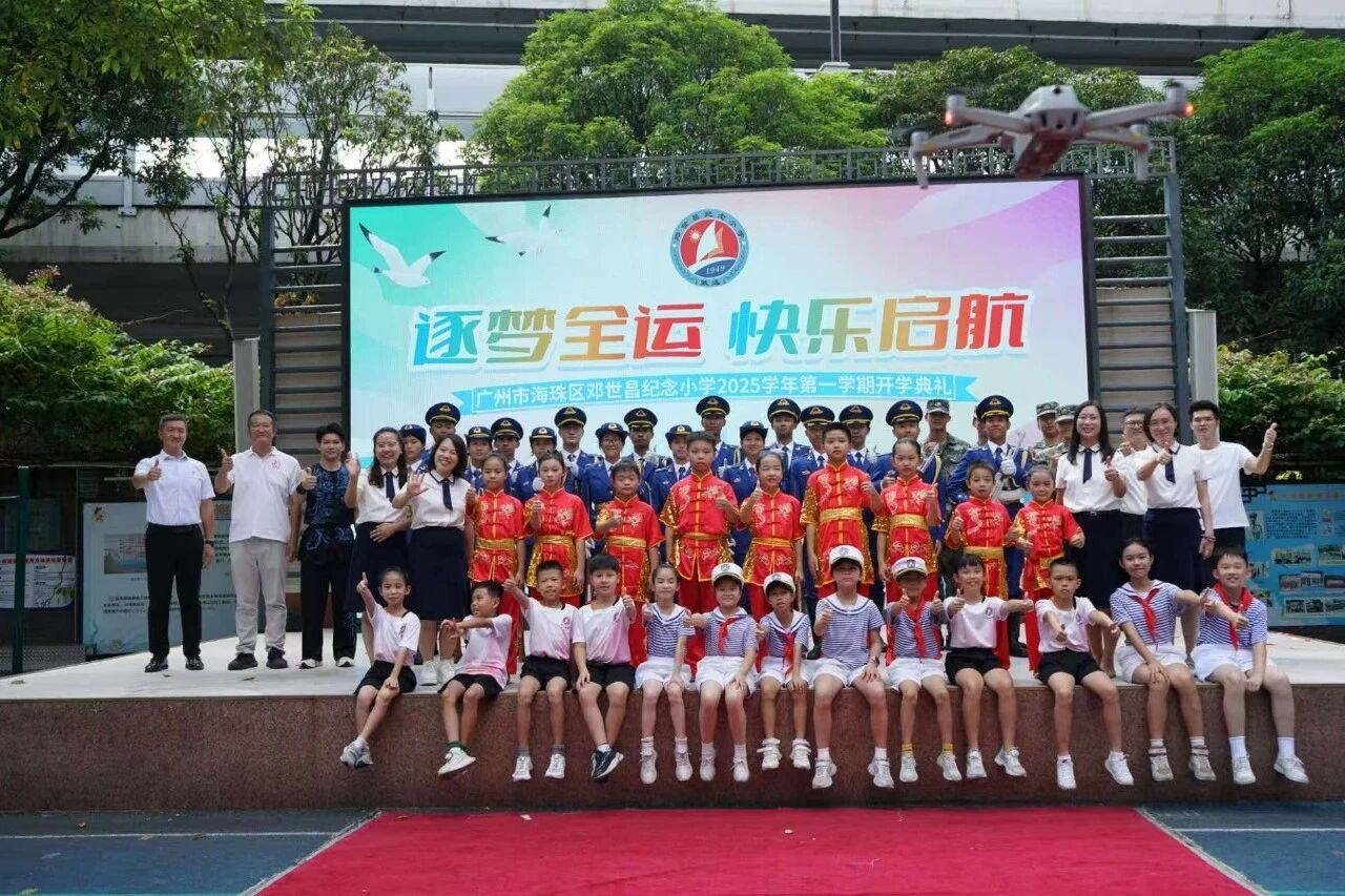 新学期伊始,9月1日,仲恺农业工程学院国旗护卫队受邀前往海珠区瀛洲小学及邓世昌纪念小学参与开学典礼并进行红色教育基地授牌仪式。这支曾在广东省国旗护卫队比赛中荣获一、二等奖的优秀队伍,以一场庄严的升旗仪式,为两所小学新生开启了意义非凡的“开学第一课”。