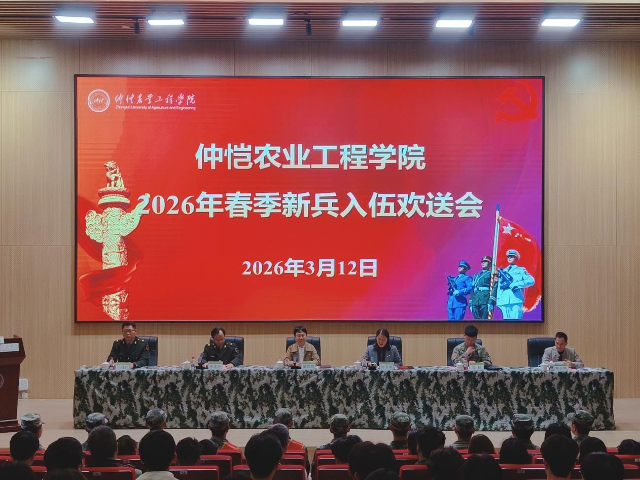 3月12日下午,学校在白云校区德新楼一楼报告厅隆重举行2026年春季新兵入伍欢送会。学校党委书记翟雪梅,学校党委常委、副校长徐玉娟,海珠区人民武装部政工科干事郑越,学生工作部(武装部)、教务部(招生办)相关负责同志,二级学院党委副书记、辅导员,新兵及家长代表,以及在校学生代表共同参会。欢送会由徐玉娟主持。