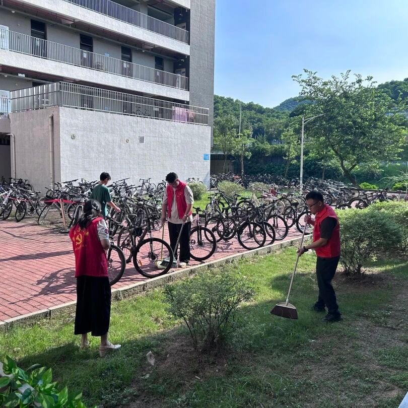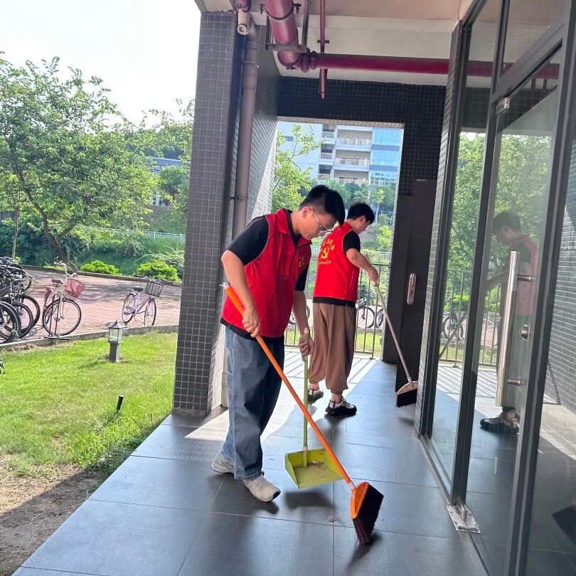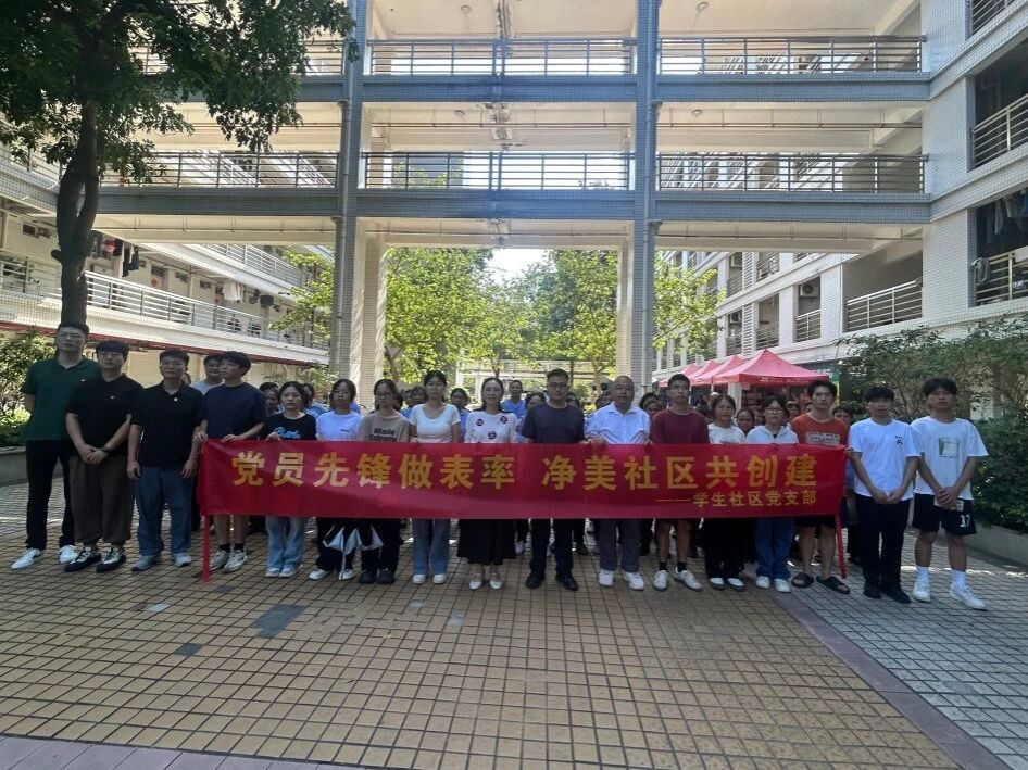 师生党员纷纷上阵,手持清洁工具,对社区公共区域卫生死角以及周边的积水容器等进行了全面清理,充分发挥党员先锋模范作用,以实际行动美化校园环境。