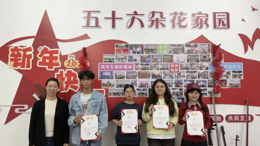 12月10日,第五届“朋辈计划”小老师聘任仪式在白云校区13栋105室顺利举行。学生工作党委副书记、学生工作部部长沈洁,学生工作党委委员、学生工作部副部长严丽纯,学生工作部思教科刘晶老师,少数民族专职辅导员阿卜杜外力老师,“五十六朵花”工作室成员,第五届全体“小老师”以及学生代表齐聚现场,共同见证这一温馨时刻。本次仪式由严丽纯主持。