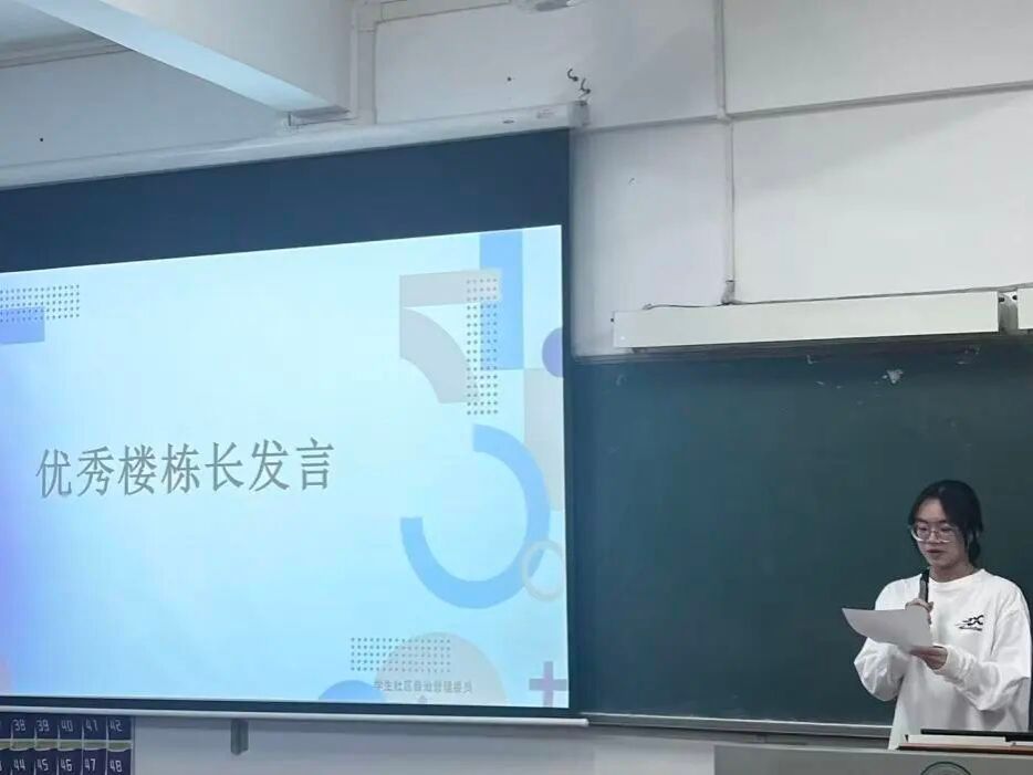 优秀楼栋长代表黄若萱分享了自己如何成为同学身边的“贴心人”、社区与同学之间的“畅通桥”、社区管理的“好帮手”。